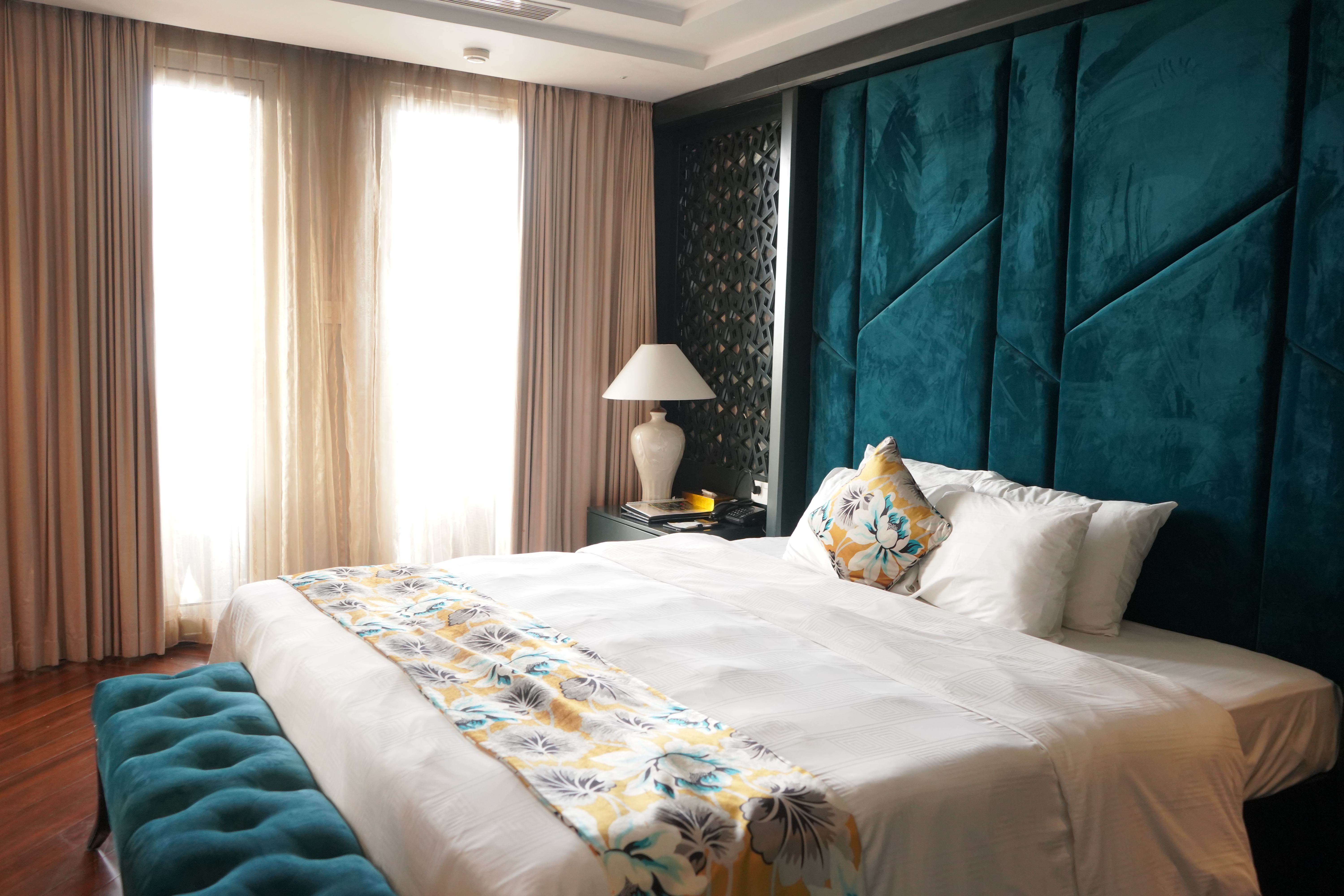 Với tầm nhìn hướng ra thành phố từ cửa sổ lồi kính toàn cảnhban công riêng, Golden Silk Suite mang đến không gian sống đẳng cấp và tràn ngập ánh sáng tự nhiên.